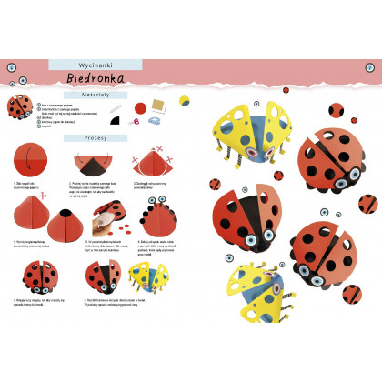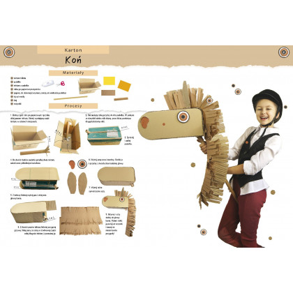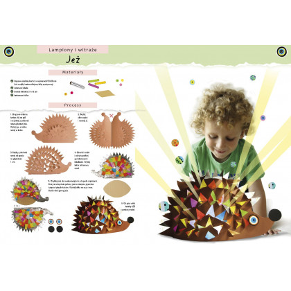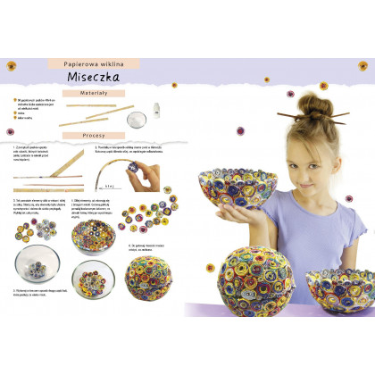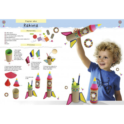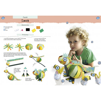 W tej pięknej książce omówione są różne techniki obróbki papieru: orgiami, papierowa wiklina, obróbka tektury, quilling, czyli tworzenie ozdób z wąskich papierowych pasków, wycinanki z kolorowych papierów, lampiony, witraże, papier mâché, czyli modelowanie przedmiotów z papieru rozmiękczonego w wodzie z klejem, z wykorzystaniem techniki zdobniczej decoupage. Dla każdej techniki zaproponowane są ciekawe realizacje, działające na wyobraźnię dziecka. Mały artysta wykona z papieru zabawki, ozdoby, przedmioty codziennego użytku czy dzieła artystyczne. Stworzy zwierzęta, udekoruje meble, dom czy ogród, uplecie koszyk, zrealizuje elementy ubioru, wyprodukuje lampiony i witraże, zmajstruje zabawki, przygotuje drobne i mniej drobne prezenty, wyprodukuje samoloty i zrobi wiele innych ciekawych przedmiotów i dekoracji. Wykonanie efektownych rękodzieł stanie się łatwe i przyjemne dzięki precyzyjnej i wyczerpującej prezentacji etapów realizacji każdego projektu, opatrzonej krok po kroku zdjęciami i rysunkami. Końcowa realizacja