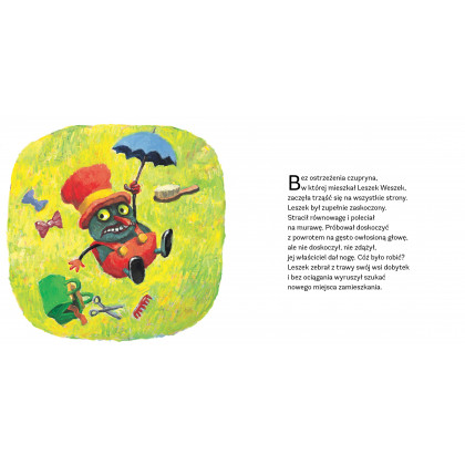 Pewnego pięknego dnia Leszek Weszek spadł z pięknych blond włosów na murawę w ogrodzie. Zebrał z ziemi swoje sprzęty i parasol chroniący przed piekącymi szamponami, rozejrzał się w koło i wyruszył na poszukiwanie bezpieczniejszego domostwa niż gęstwiny włosów…
