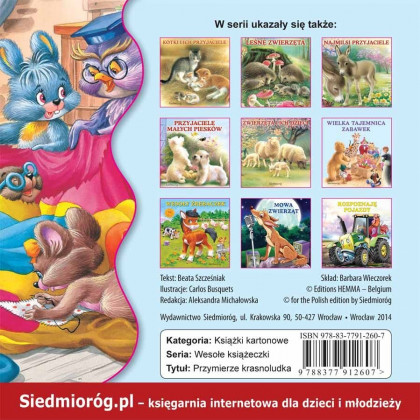 Książka jest dostosowana do najmłodszego wieku – wykonana z twardego, grubego kartonu powleczonego folią, dzięki czemu nie ulegnie szybkiemu zniszczeniu w rączkach małych dzieci.