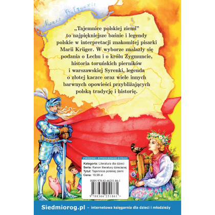 Tajemnice polskiej ziemi to najpiękniejsze baśnie i legendy polskie w interpretacji znakomitej autorki, Marii Kruger. W wyborze znalazły się podania o Lechu i Królu Zygmuncie, historia toruńskich pierników i warszawskiej Syrenki, legenda o Złotej Kaczce oraz wiele innych barwnych opowieści przybliżających polską tradycję i historię.