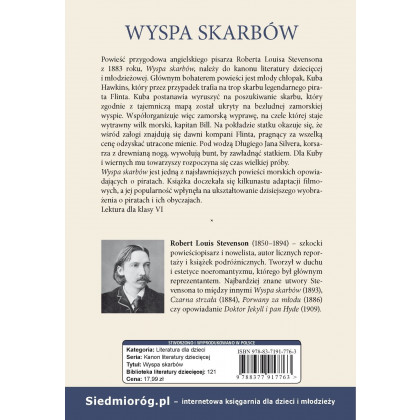 Powieść przygodowa angielskiego pisarza Roberta Louisa Stevensona z 1883 roku, Wyspa skarbów, należy do kanonu literatury dziecięcej i młodzieżowej. Głównym bohaterem powieści jest młody chłopak, Kuba Hawkins, który przez przypadek trafia na trop skarbu legendarnego pirata Flinta. Kuba postanawia wyruszyć na poszukiwanie skarbu, który zgodnie z tajemniczą mapą został ukryty na bezludnej zamorskiej wyspie. Współorganizuje więc zamorską wyprawę, na czele której staje wytrawny wilk morski, kapitan Bill. Na pokładzie statku okazuje się, że wśród załogi znajdują się dawni kompani Flinta, pragnący za wszelką cenę odzyskać utracone mienie. Pod wodzą Długiego Jana Silvera, korsarza z drewnianą nogą, wywołują bunt, by zawładnąć statkiem. Dla Kuby i wiernych mu towarzyszy rozpoczyna się czas wielkiej próby. Wyspa skarbów jest jedną z najsławniejszych powieści morskich opowiadających o piratach. Książka doczekała się kilkunastu adaptacji filmowych, a jej popularność wpłynęła na ukształtowanie dzisiejszego wyobrażenia o piratach i ich obyczajach.