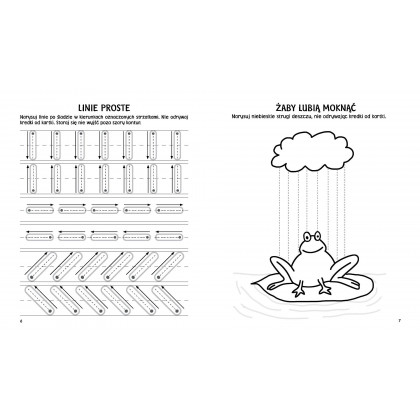 Szlaczki zostały opracowane z myślą o dzieciach rozwijających zdolności manualne i umiejętność pisania po śladzie na pierwszym etapie nauki pisania.