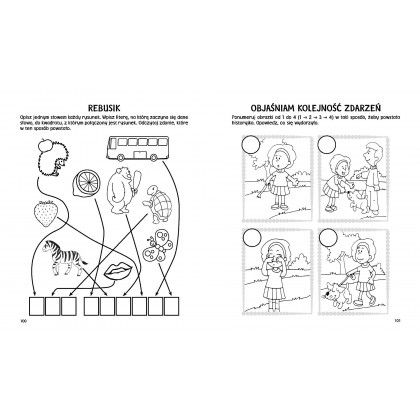 Dzięki rebusom, labiryntom, ćwiczeniom na kojarzenie podobieństw, wyszukiwaniu różnic, łączeniu zbiorów i innym prostym łamigłówkom dziecko uczy się logicznego myślenia i przygotowuje do wykonywania działań matematycznych.
