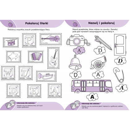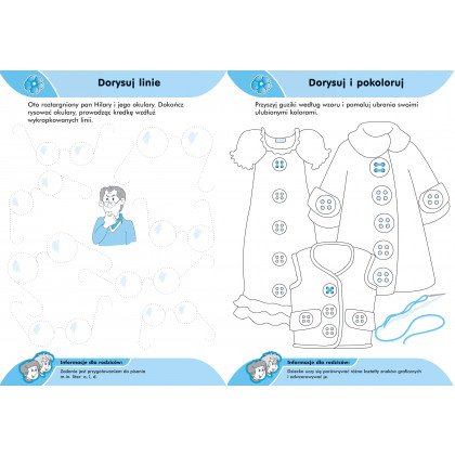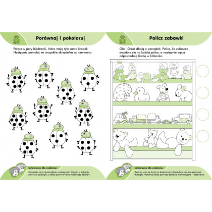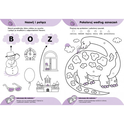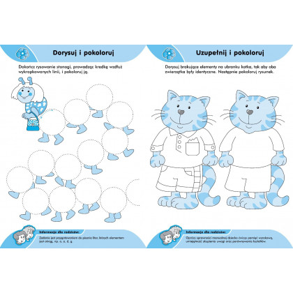 Na każdej stronie znajdują się informacje rodziców określające precyzyjnie, co rozwija dane ćwiczenie.