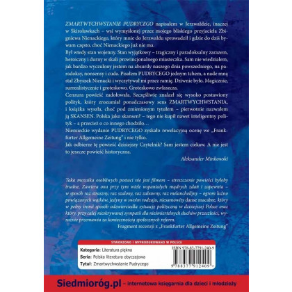 "ZMARTWYCHWSTANIE PUDRYCEGO" napisałem w Jerzwałdzie, inaczej w Skiroławkach - wsi wymyślonej przez mojego bliskiego przyjaciela Zbigniewa Nienackiego, który mnie do Jerzwałdu sprowadził i gdzie do dziś bywam często, choć Nienackiego już nie ma. Był wtedy stan wojenny. Stan wyjątkowy - tragiczny i paradoksalny zarazem, heroiczny i durny w skali prowincjonalnego miasteczka. Sam nie wiedziałem jak bardzo wyczulony jestem na absurdy naszego dnia powszedniego, na paradoksy, nonsensy i cuda. Pisałem PUDRYCEGO jednym tchem, a nade mną stał Zbyszek Nienacki i wyczytywał mi przez ramię. Dziwnie było. Magicznie, surrealistycznie i groteskowo. Groteskowo zwłaszcza. Cenzura powieść zadołowała. Szczęśliwie znalażł się wysoko postawiony polityk, który zrozumiał ponadczasowy sens ZMARTWYCHWSTANIA i książka wyszła, choć pod zmienionym tytułem - pierwotnie nazwałem ją SKANSEN. Polska jako skansen? - tego nie kupił nawet inteligentny polityk - a przecież o co innego chodziło... Niemieckie wydanie PUDRYCEGO zyskało rewelacyjną ocenę we "Frankfurter Allgemeine Zeitung" i nie tylko. Jak odbierze tę powieść dzisiejszy Czytelnik? Sam jestem ciekaw. A nie jest to jeszcze powieść historyczna.